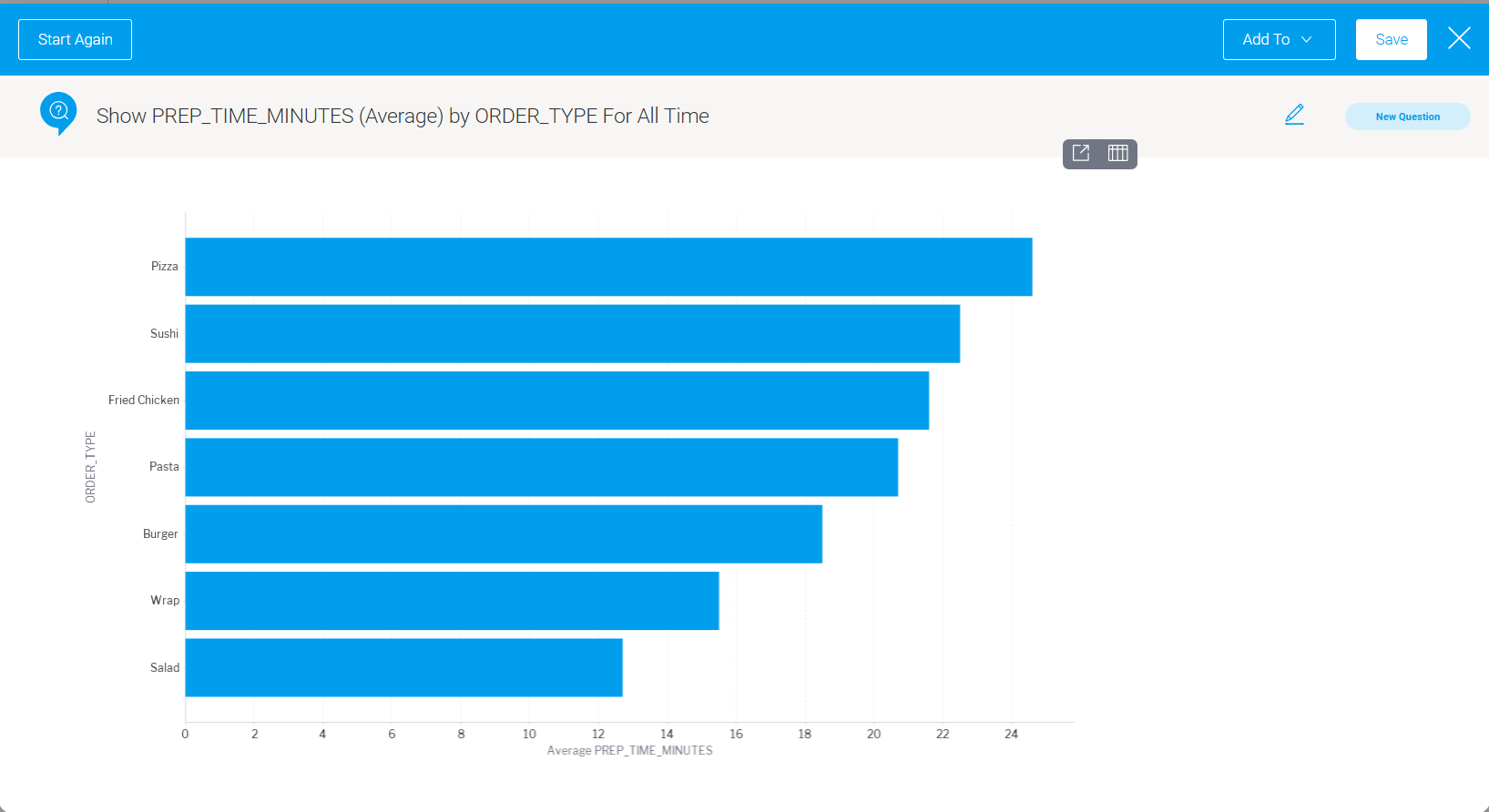 この可視化から、ピザの調理に最も時間がかかっていることが分かります。そして、調理時間が長いほど顧客の満足度が下がる傾向があることもすでに分かっています。今こそ、より良いピザ窯に投資するタイミングかもしれません。